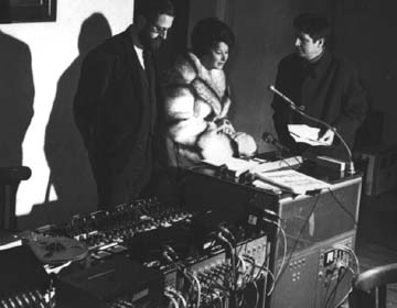 You can experience these contributions through available recordings. Dame Gillian Weir has produced a number of recordings over the years; in the photo she is working with Argo recording engineers in the early '70s. Fortunately most are available today in compact disc format; see our where-to-buy list for details.