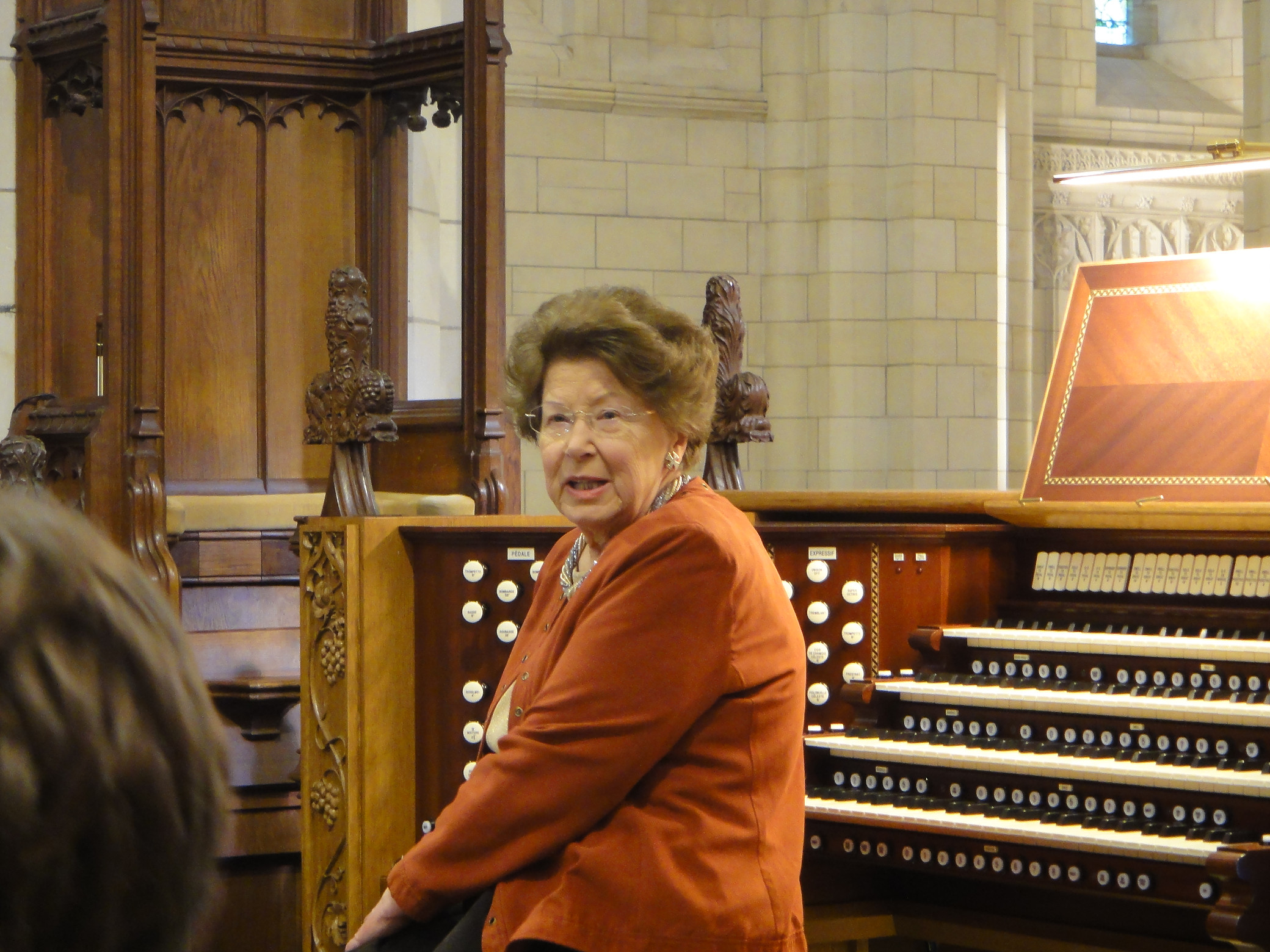 Although Dame Gillian may have retired from centre-stage performing, the sheer energy, stamina and bravura were as gripping as ever. At every opportunity Dame Gillian could be seen adding and subtracting stops, refining registration, demonstrating alternative fingering patterns, and it would be impossible to summarize the wealth of experience and erudition of this ‘hands on’ approach here. Questions which frequently vex organists such as the pros and cons of 8’ or 16’ pedal registration in the trio sonatas, choice of mutation stops and understanding the important concepts of rhythm and meter were all addressed. The Mendelssohn proved to be an ideal choice for defining accent and articulation in the opening bars of the last movement with the overlapping arpeggios- no hint of blurring tolerated here!