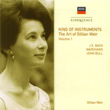 This set of historic organ performances recorded between 1974 and 1980 is now available as part of the Eloquence series of the Decca label; the discs are now sold as individual CDs. With “authority and stylish aplomb,” Gillian Weir performs a wide variety of music on instruments new and old.